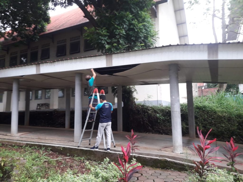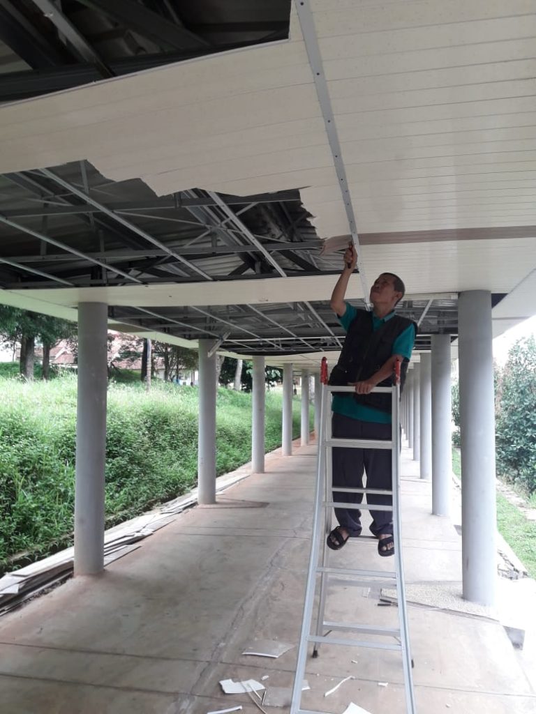 Merapihkan plapon koridor.