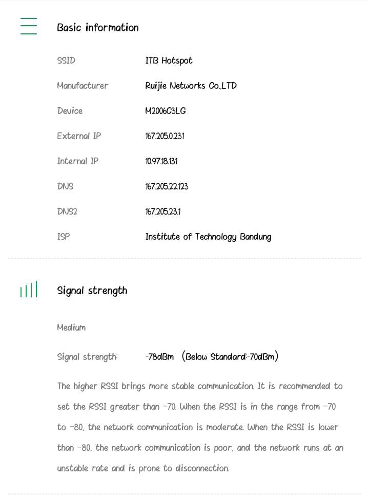 Hasil pengecekan wifi di gedung C lantai 1